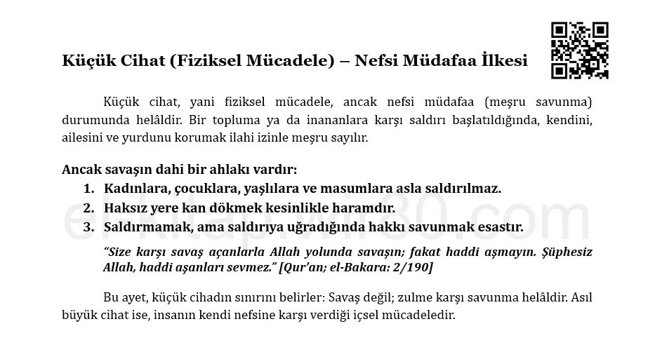 Küçük Cihat (fiziksel mücadele) hakkında açıklamalar sunulmuştur.